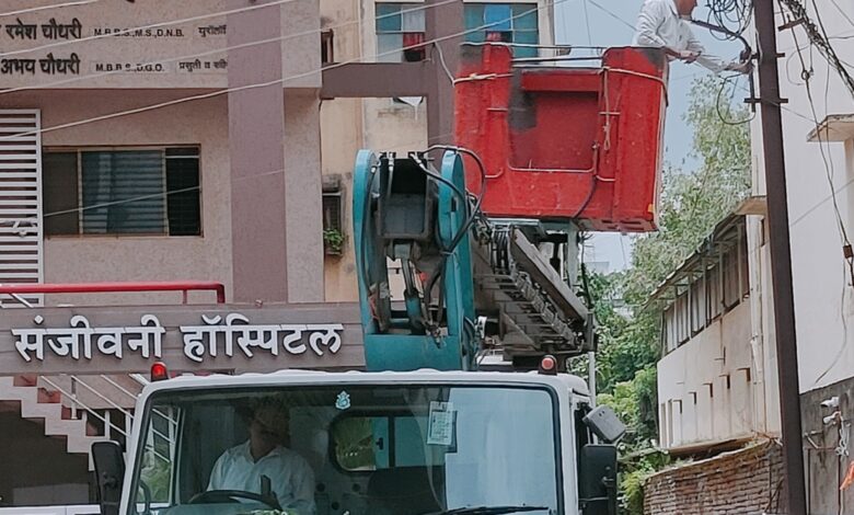 नेहरू चौकात पथदिवे लावतांना ज.श.म.न.पा कर्मचारी