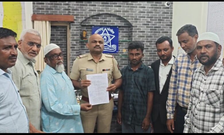 पोलिस निरीक्षक धारबाडे यांना निवेदन, पुरवणी जबाब देताना फिर्यादी इसा पटेल व यासीन खान सह फारुक शेख,एकता संघटने च्या शिष्ट मंडळात यांचा सहभाग होता